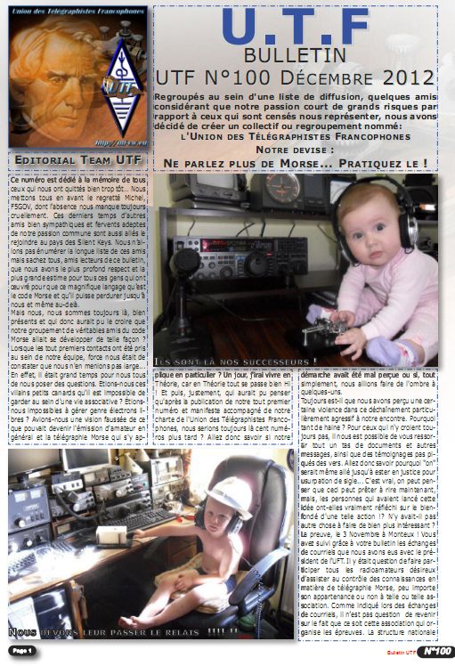 Le bulletin du mois de Décembre de l'Union des Télégraphistes Francophones est paru, ce mensuel gratuit est envoyé à toute personne s'abonnant. lien