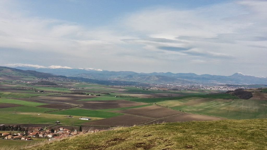 Le choix s'est porté sur une référence facile, située à une vingtaine de kilomètres à l'Est de Clermont-Ferrand, à une altitude de 563m. De ce point on peut admirer la chaîne des puys d'Auvergne, encore enneigée en cette période sans compter la présence de la chapelle Notre-Dame-de-la-Salette, construite en 1868, encore en très bon état de conservation.