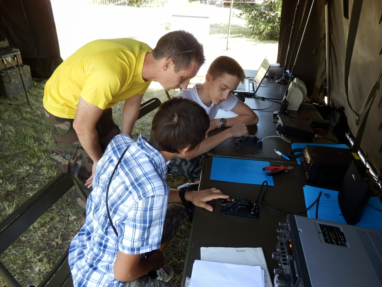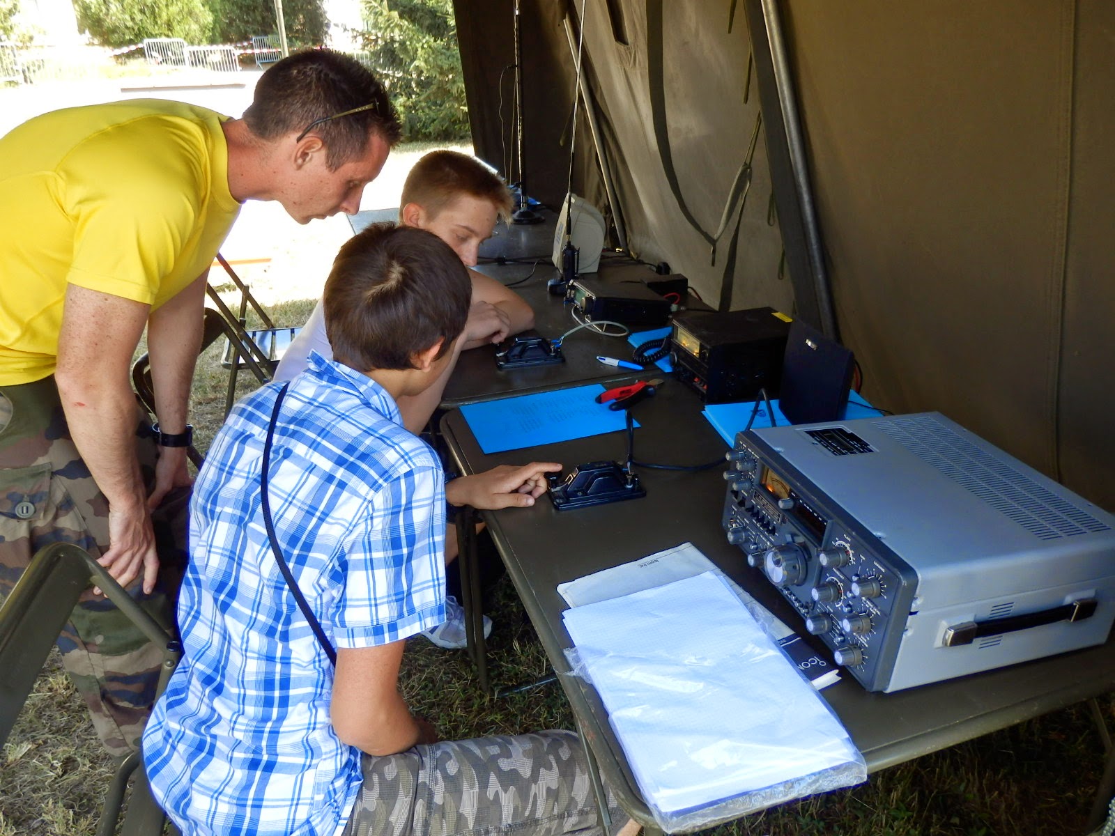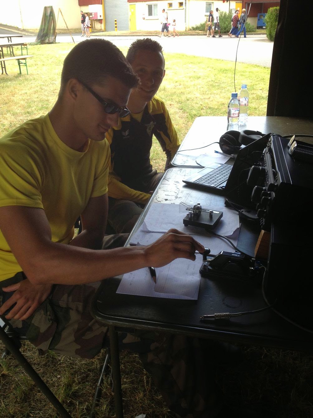 deux opérateurs radiographistes du 28°RT qui étaient volontaires pour nous aider pendant ces deux jours et bien sûr intéressés par le radioamateurisme, en espérant qu'ils seront la relève du radio-club F5KIN.