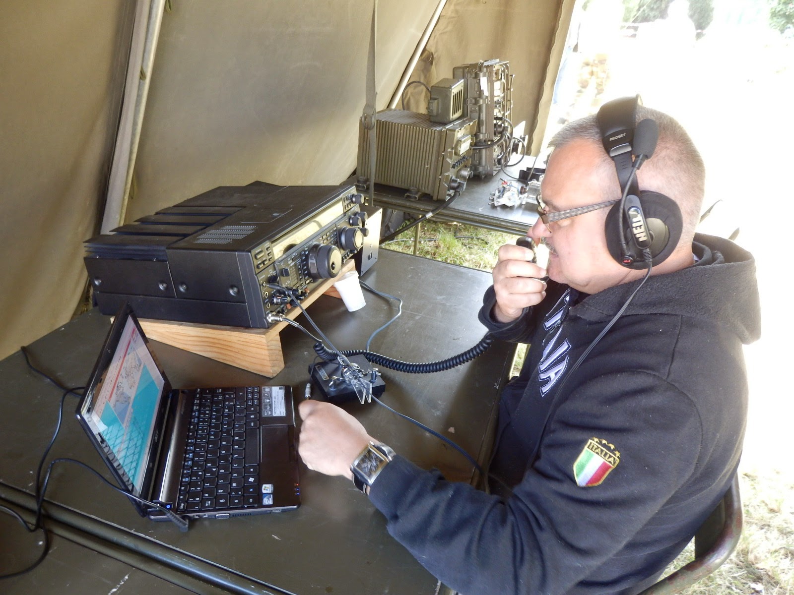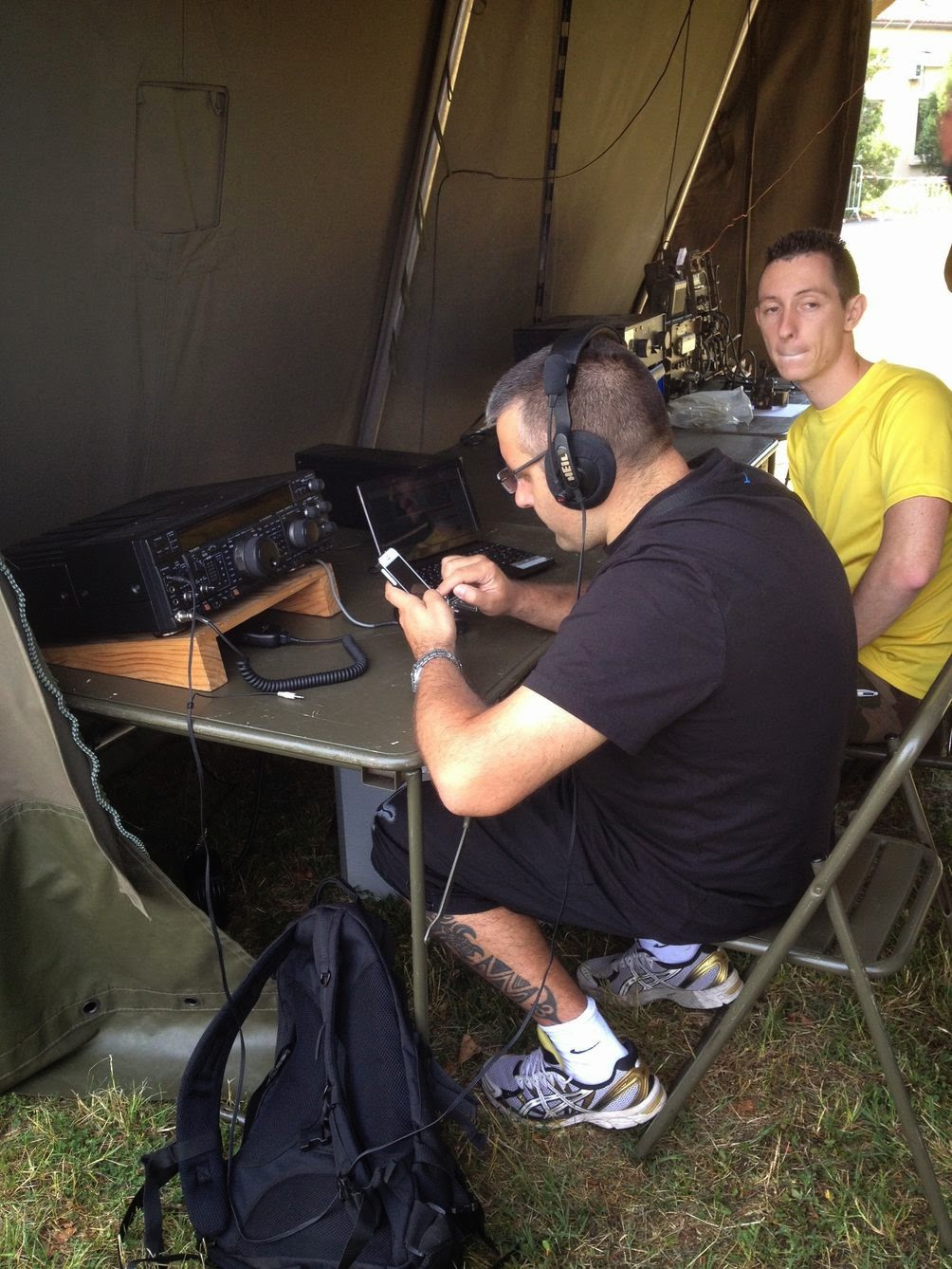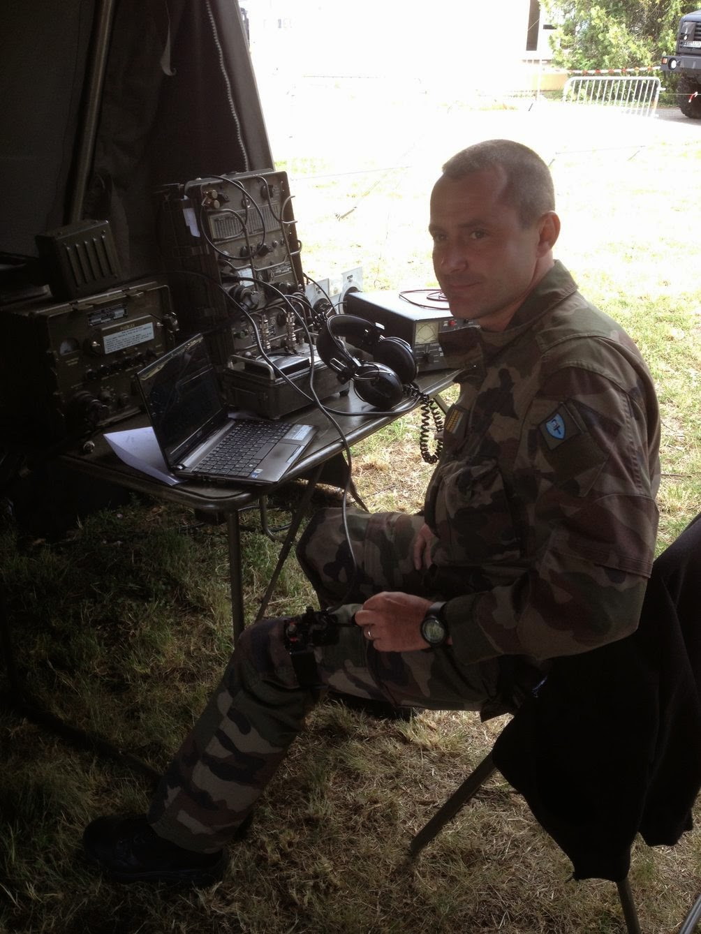 deux opérateurs radiographistes du 28°RT qui étaient volontaires pour nous aider pendant ces deux jours et bien sûr intéressés par le radioamateurisme, en espérant qu'ils seront la relève du radio-club F5KIN.
